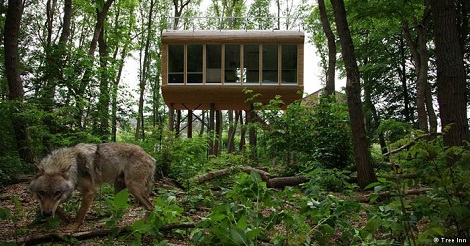 সন্ধ্যা নামছে, আঁধার ঘনাচ্ছে, কোথাও কোনো মানুষের সাড়া নেই৷ এই হলো উত্তর জার্মানির ব্রেমেন শহরের কাছে ‘ট্রি ইন’ বা বৃক্ষ হোটেলের পরিবেশ৷ ড্যোরফার্ডেন-এ বাচ্চা নেকড়েদের রাখার জন্য যে ‘এনক্লোজার’ আছে, তার ঠিক মাঝখানে এই ট্রিহাউস হোটেল৷ পাঁচ মিটার উঁচুতে কাচে ঘেরা কামরা থেকে পরম আরামে নেকড়ে দেখা যায় – কেননা এখানে মিনি-বার থেকে হুইর্লপুল, কোনো আধুনিক বিলাসিতার অভাব নেই৷